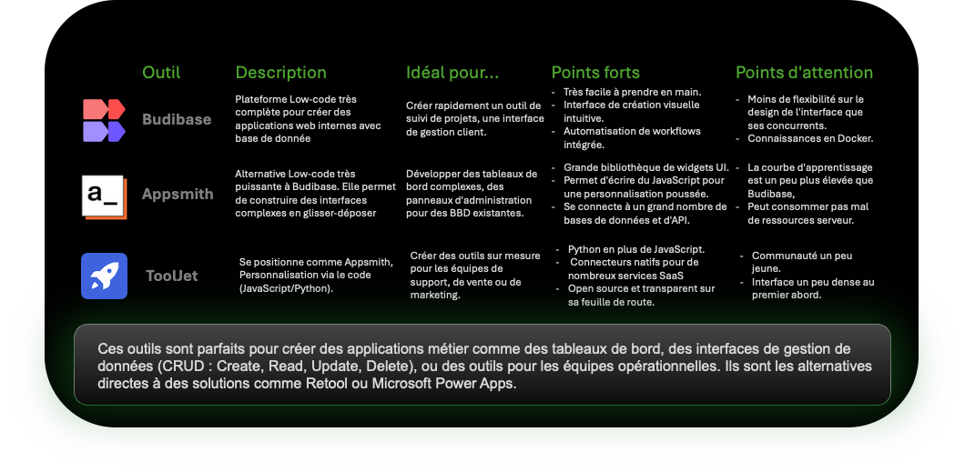 Création d’applications internes et tableaux de bord